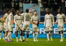 Още в 17-ата минута Давид Нерес откри резултата в полза на домакините, след като засече центриране на Расмус Хойлунд.