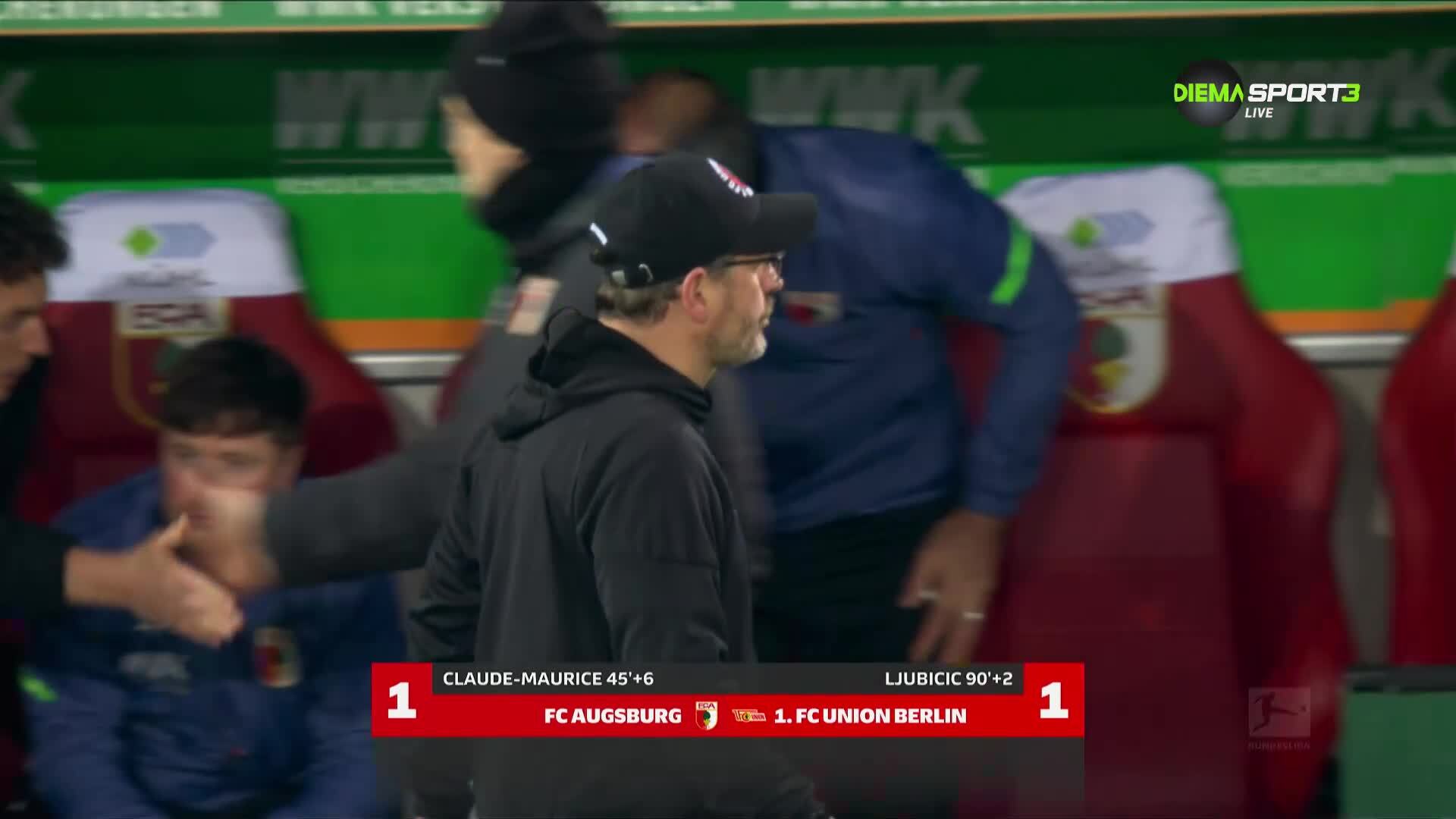 Аугсбург и Унион Берлин не се победиха в двубоя си от 17-ия кръг на Бундеслигата, завършил 1:1. Гостите от столицата стигнаха до равенството по драматичен начин, след като изравниха дълбоко в добавеното време, въпреки че играеха с човек по-малко. Домакините поведоха с попадение на Алексис Клод-Морис в края на първото полувреме, а Марин Любичич донесе точката за Унион в 92-рата минута.