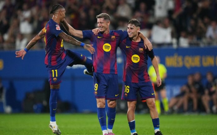 Барселона разгроми Валенсия с 6:0 в мач от 4-ия кръг на Ла Лига, игран на 14 септември 2025 г. на стадион „Йохан Кройф“ в Сан Жоан Деспи. Това бе първото домакинство на каталунците за сезона, след като завръщането им на „Камп Ноу“ бе отложено.