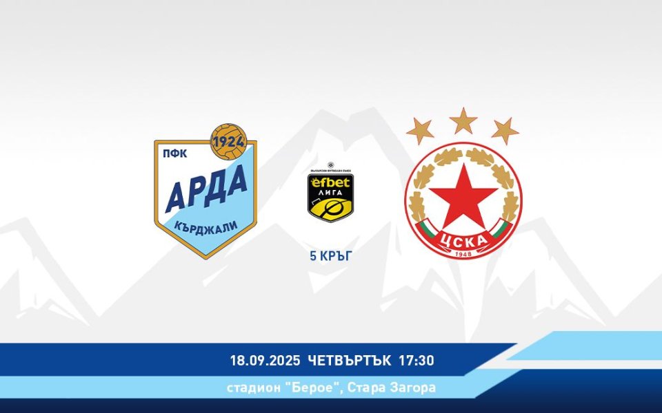 „Уважаеми фенове на АРДА, както знаете отложената среща от 5-ти кръг на efbet ЛИГА между АРДА и ЦСКА ще се играе на стадион „Берое“ в Стара Загора. Двубоят е на 18 септември от 17:30ч.