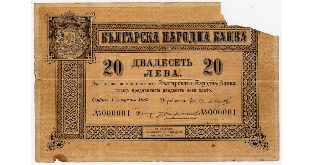 Българската народна банка започва да емитира банкноти през 1885 г. Първите са от 20 и 50 лева.