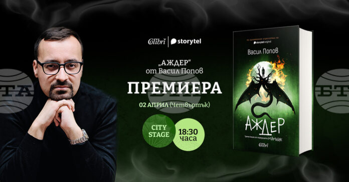 Васил Попов ще представи „Аджер“, третия роман от поредицата „Мамник“, на днес, 2 април, от 18:30 ч. в City Stage, София, съобщиха издателите от „Колибри“.