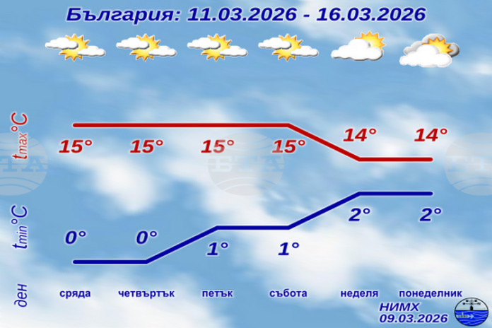 До края на седмицата времето в страната ще бъде предимно слънчево, съобщава дежурният синоптик Красимир Стоев от отдела „Прогнози на времето“ в Националния институт по метеорология и хидрология НИМХ, представяйки седмичната прогноза на времето.