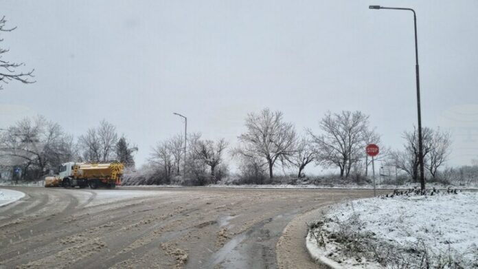 Пътищата в региона са проходими. Настилките са мокри, почистват се и се опесъчават. Най-силен е валежът в района на Търговище и Попово. Видимостта е добра. Температурите са от нула до 3 градуса.