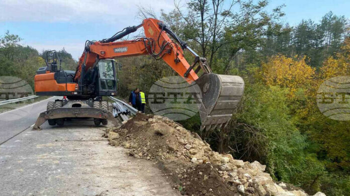 Неотложните дейности по укрепване на пътя започнаха в началото на тази седмица. До момента са премахнати мантинелите, предстои да бъде добавен още трошен камък и да се извърши торкретиране с бетон с цел укрепване на ската. Изградена е площадка, която се използва за издигане на насипа като е проправен и временен път през гората, по който техниката достига до компрометирания участък, съобщиха още от АПИ.