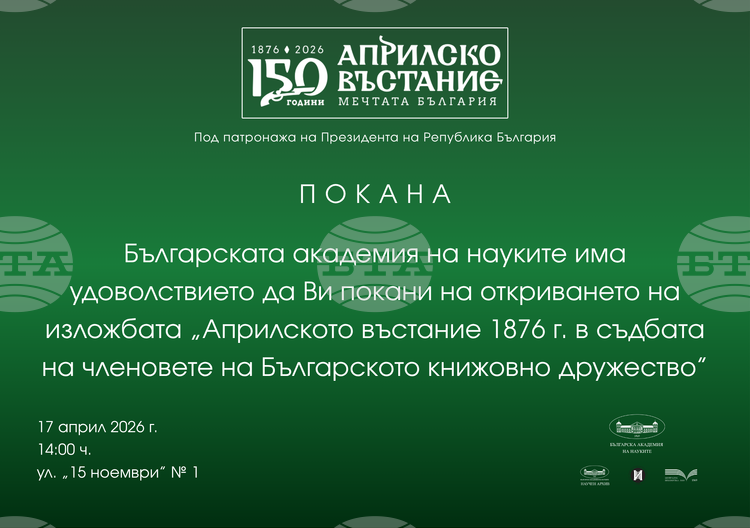 Изложбата „Априлското въстание 1876 г. в съдбата на членовете на Българското книжовно дружество“ ще разкаже за ролята на членовете на Българското книжовно дружество в Априлското въстание, съобщиха от Българската академия на науките (БАН).