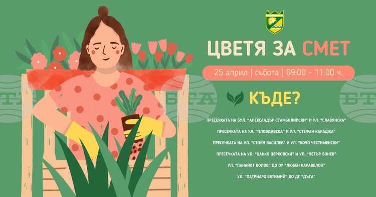 Инициативата „Цветя за смет“ ще се проведе в Пазарджик тази събота (25 април), съобщиха от местната администрация. Всеки предал разделно електроуреди, хартия и текстил ще получи цвете или декоративен храст.