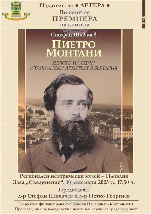 Книгата „Пиетро Монтани – делото на един италиански архитект в България“ на д-р Стефан Шивачев ще бъде представена на 10 декември в зала „Съединение“ на Регионален исторически музей – Пловдив, съобщават от издателство „Летера“.