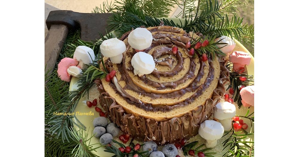 “Представям ви празничен десерт – коледно пънче с течен шоколад и гъбки от бонбони маршмелоу”, ни пише Наталия Панчева.