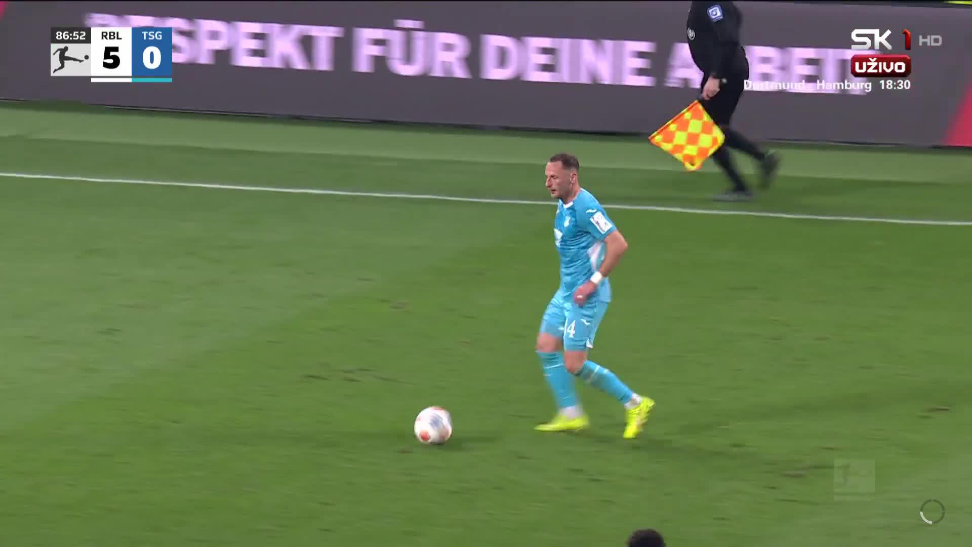 РБ Лайпциг постигна разгромен успех с 5:0 срещу Хофенхайм на своя Ред Бул Арена в откриващия сблъсък от 27-ия кръг на Бундеслигата. С този триумф биковете събраха актив от 50 точки и успяха да изместят днешния си съперник от третата позиция в класирането заради по-добрата си голова разлика, като между двата тима с мач по-малко се намира съставът на Щутгарт.