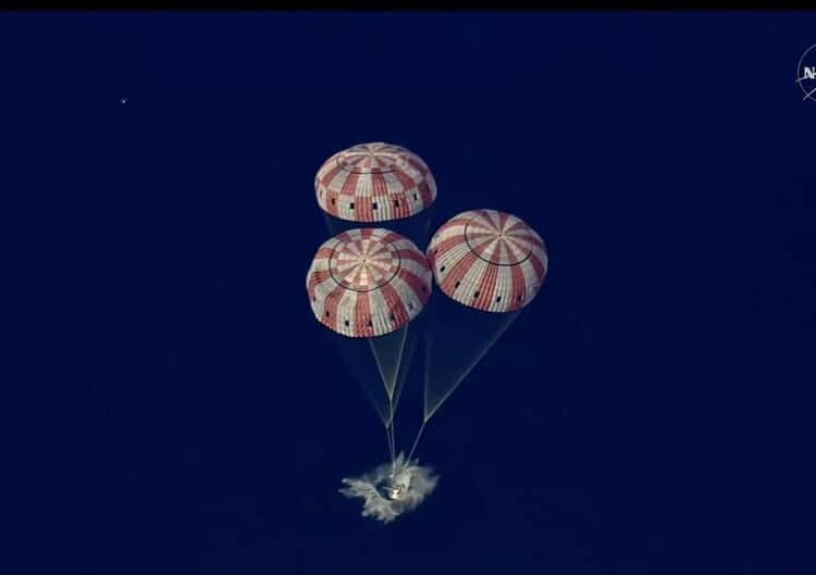 Космическият кораб „Орион“ на НАСА, превозващ екипажа на „Артемида 2“, успешно се завърна на Земята, завършвайки първия пилотиран полет до Луната и обратно от над 50 години. Капсулата се приземи край бреговете на Калифорния, след като отново влезе в атмосферата с приблизително 40 000 км/ч. Спускането и повторното влизане отнеха приблизително 13 минути.