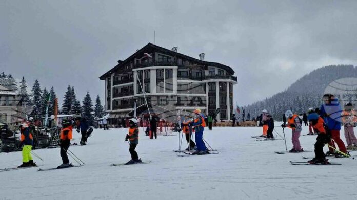 В момента в ски зоната има лека мъгла и вали слаб сняг.