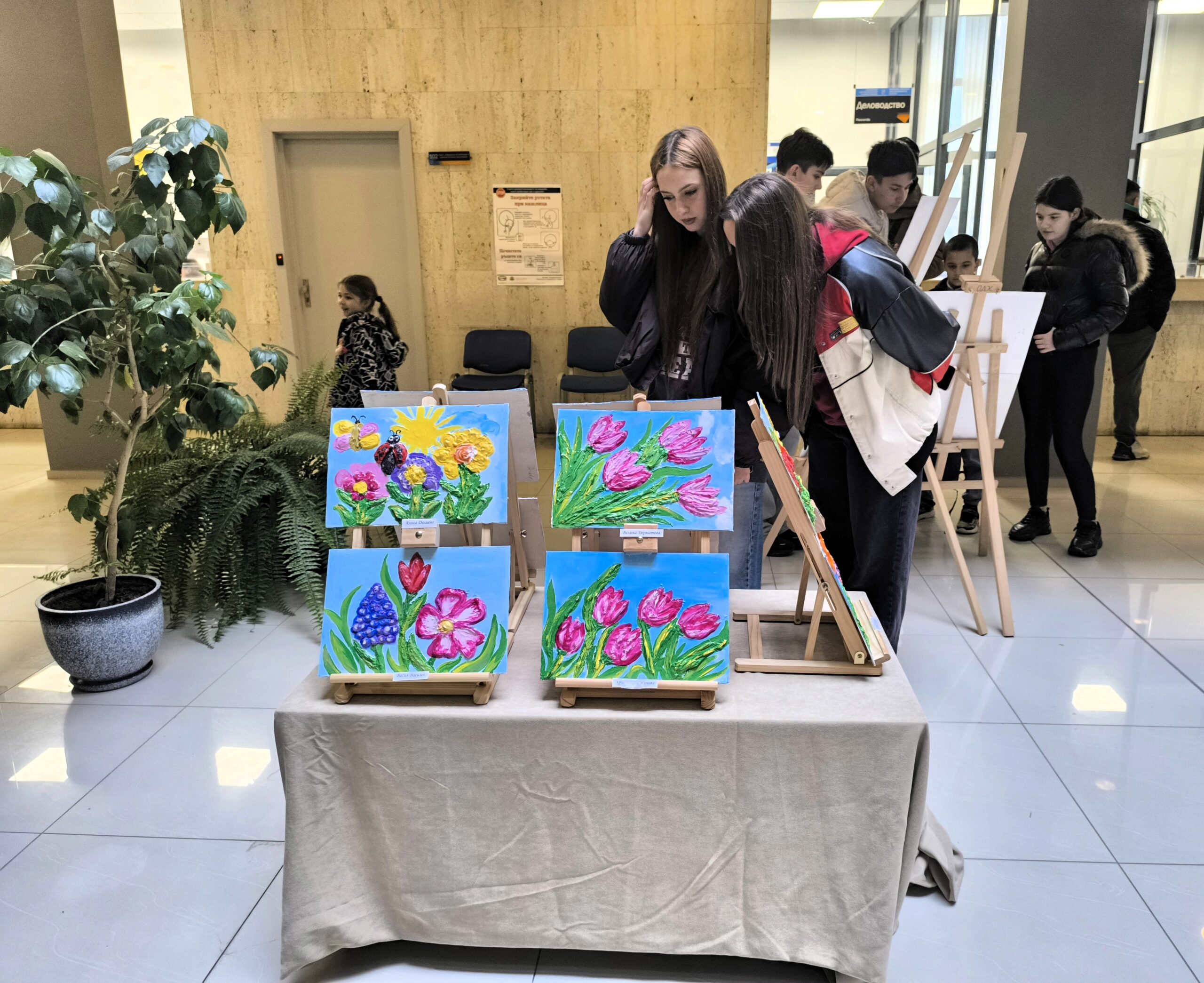 Пролетната експозиция ще посреща посетителите в общината до края на месеца, а творбите на най-малките възпитаници от школата по изобразително изкуство ще бъдат изложени във фоайето на ОДК.