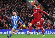 Още в 17-ата минута Давид Нерес откри резултата в полза на домакините, след като засече центриране на Расмус Хойлунд.