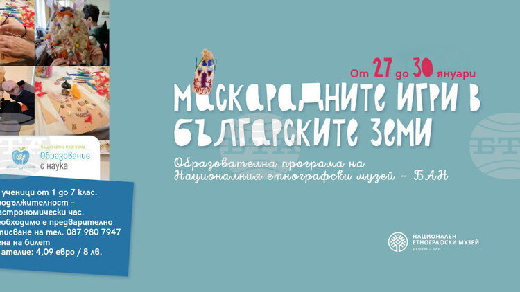 Националният етнографски музей при Българската академия на науките ще проведе образователна програма на тема „Маскарадните игри в българските земи“ за ученици от първи до седми клас. Занятията ще се състоят в периода от 27 до 30 януари, съобщават от музея.