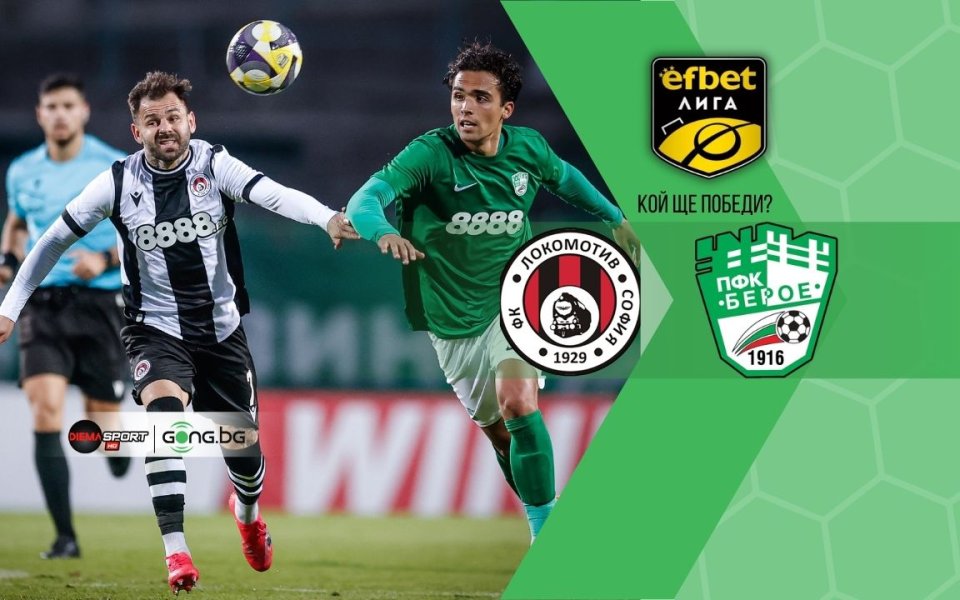 Локомотив София и Берое се откриват програмата в четвъртък от 29-тия кръг на efbet Лига. Срещата на стадион „Локомотив“ в столичния квартал „Надежда“ стартира в 15:30 часа и може да я гледате пряко по DIEMA SPORT, както и онлайн на платформата PLAY DIEMA XTRA. На сайта Gong.bg ще проследим двубоя на живо с видеосъдържание.
