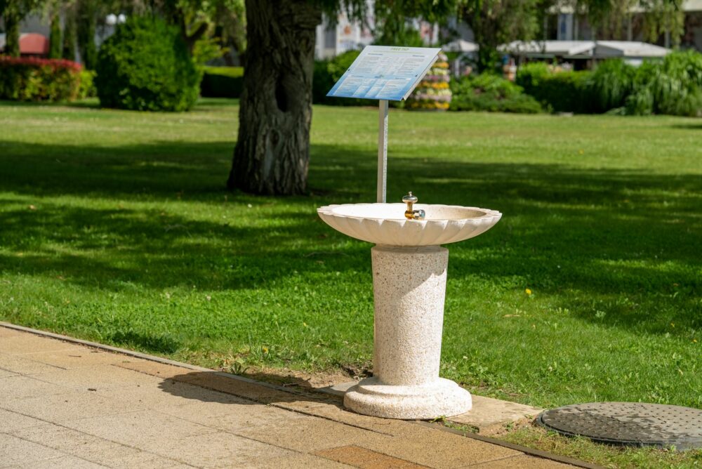 - Туристите в курорта Албена вече три години пият безплатно минерална вода от три каменни чешми във форма на раковина, които предлагат природно чиста вода за всички гости на комплекса. Тази инициатива е част от стратегията на курорта за устойчиво развитие и намаляване на пластмасовите отпадъци.
