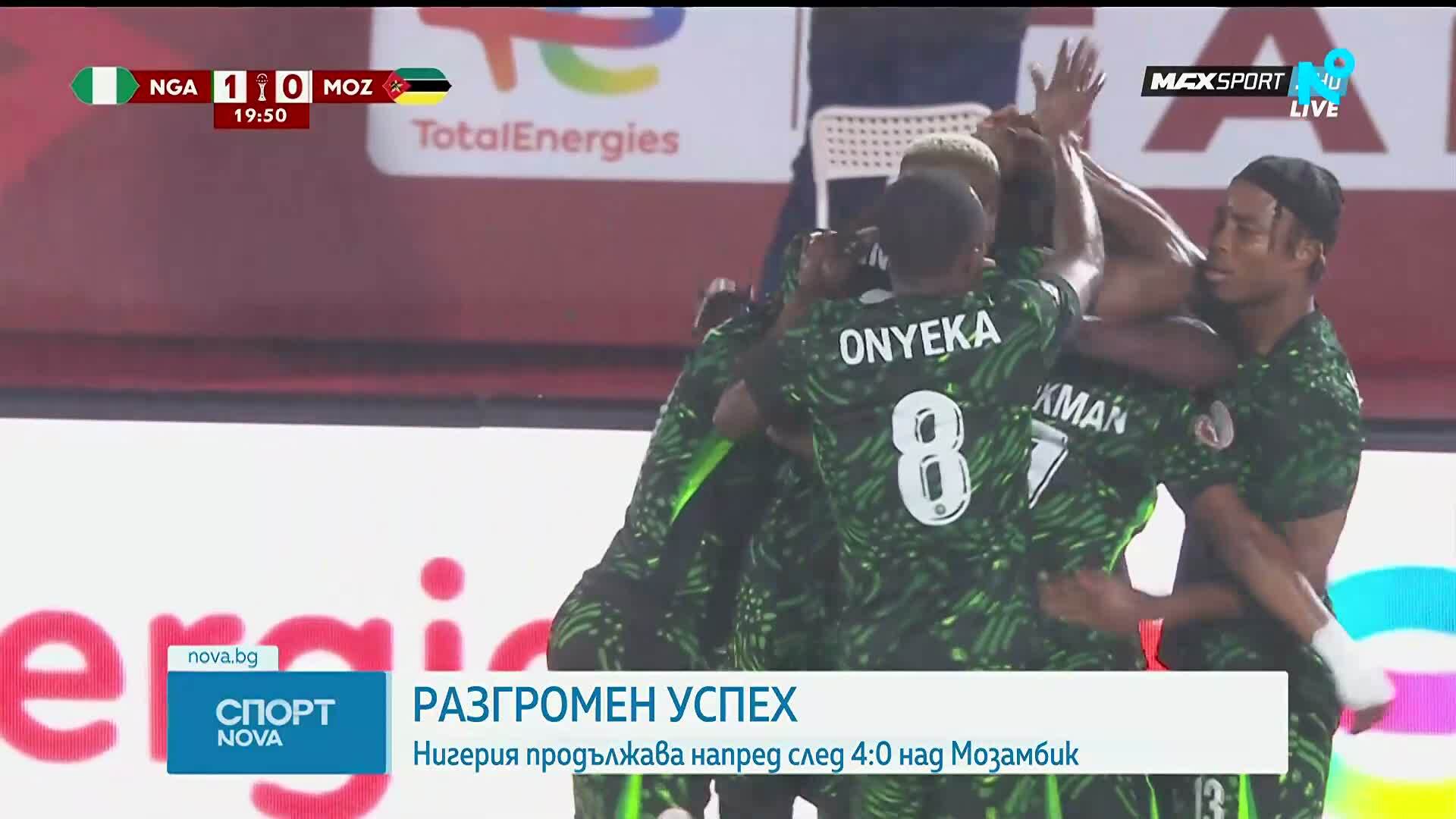 Националният отбор на Нигерия победи тима на Мозамбис с 4:0 и се класира без проблем за четвъртфиналите на турнира за Купата на африканските нации. Така тимът на „супер орлите“ ще чака в сблъсък в Топ 8 победителя от двубоя между тимовете на Алжир и Демократична Република Конго, който ще се играе утре.