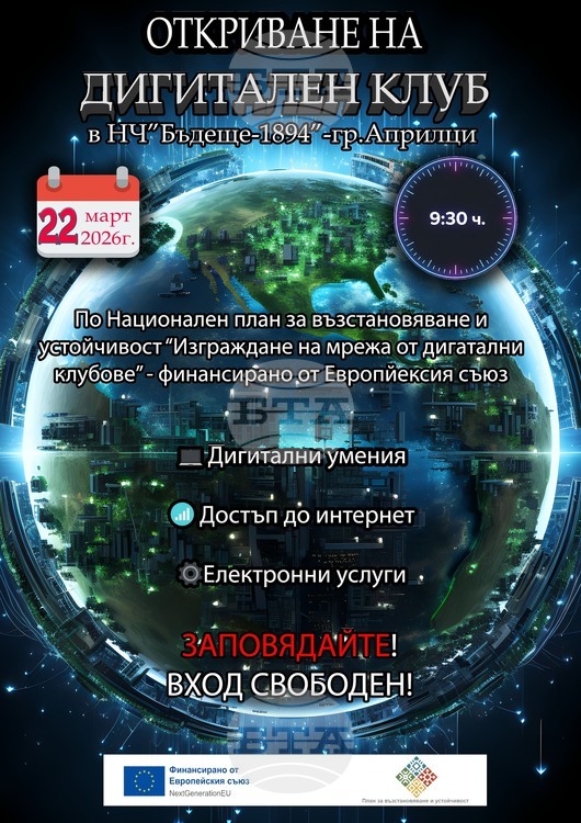 Дигитален клуб ще бъде официално открит на 22 март в Народно читалище „Бъдеще – 1894 г.“ в квартал „Острец“ в Априлци. Това съобщи за БТА Велиана Ангелова, секретар на културната институция.