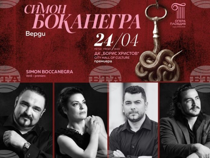 Премиерна постановка на „Симон Боканегра“ от Джузепе Верди ще се състои на 24 април в Дома на културата „Борис Христов“ в Пловдив, съобщават от екипа на пловдивската опера.