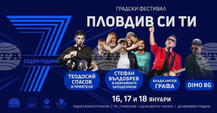 Градският фестивал „Пловдив си ти“ ще се проведе от 16 до 18 януари и ще превърне центъра на града в сцена за култура, музика и споделени преживявания, съобщават организаторите от Фондация „Пловдив 2019“. Поводът е седмата годишнина от официалното откриване на инициативата „Пловдив – Европейска столица на културата 2019“, което се отбелязва на 12 януари 2026 г.