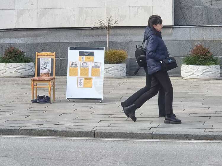 Празни столове с оставени до тях обувки – символ на „изчезването на личността” заради насилие, бяха поставени пред сгради във Велико Търново