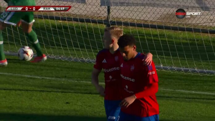 Ракув поведе на Лудогорец от дузпа в 5-ата минута. Йонатан Брунес се измъкна от Идан Нахмиас, след което беше фаулиран в наказателното поле от Хендрик Бонман.