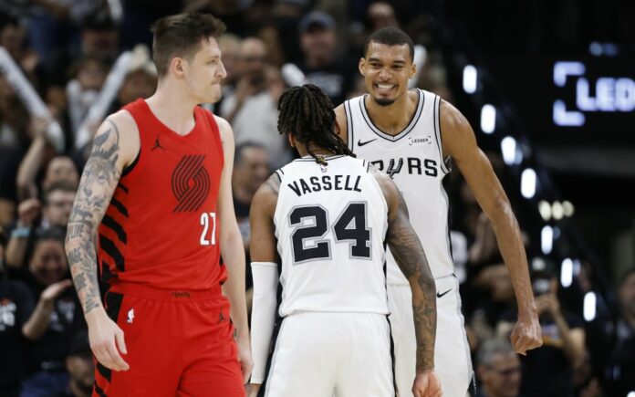 Сан Антонио Спърс се класира за втория кръг от плейофите в Западната конференция на Националната баскетболна асоциация (НБА) след успех над Портланд Трейл Блейзърс със 114:95. „Шпорите“ затвориха серията с 4:1 победи и с три поредни спечелени мача, включително този пред собствена публика в Тексас.