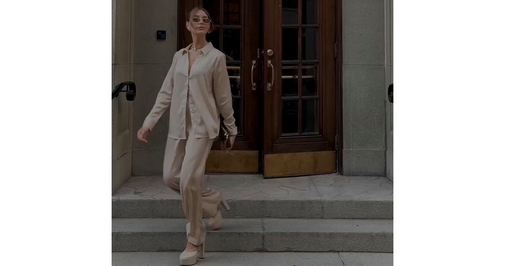 В по-делова среда сатенените обувки се комбинират с класически елементи като панталони с висока талия, ризи и сака. Модели със заострен връх или нисък ток се съчетават добре с прави или широки панталони, като създават по-мек контраст с по-строгите линии на облеклото. Подходящи са и за комбинации с пола до коляното или рокля с изчистена линия. Така визията остава професионална, но изглежда по-актуална и по-малко строга.