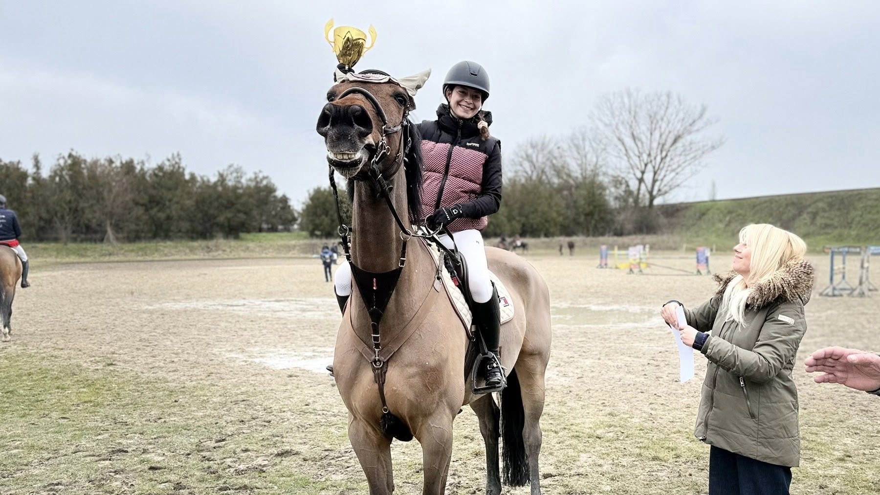 Габриела Георгиева с кон Истанбул от каварненското с.Българево спечели майсторския паркур по време на турнира по прескачане на препятствия по повод Тодоровден в Малка Смолница, а по този начин и наградата на Кмета на Община Добричка.