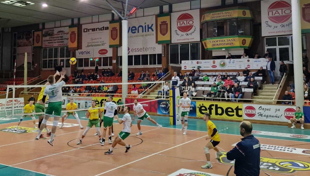 Отборът на Добруджа 07 (Добрич) оглави класирането във второто ниво на шампионата – Висшата лига, след като победи Черноморец 2008 (Бяла) с 3:0 (25:14, 25:19, 25:14) в мач от втория кръг. Това бе втори успех на момчетата на Димитър Маринков, като са с пълен актив от 6 точки и без загубен гейм.