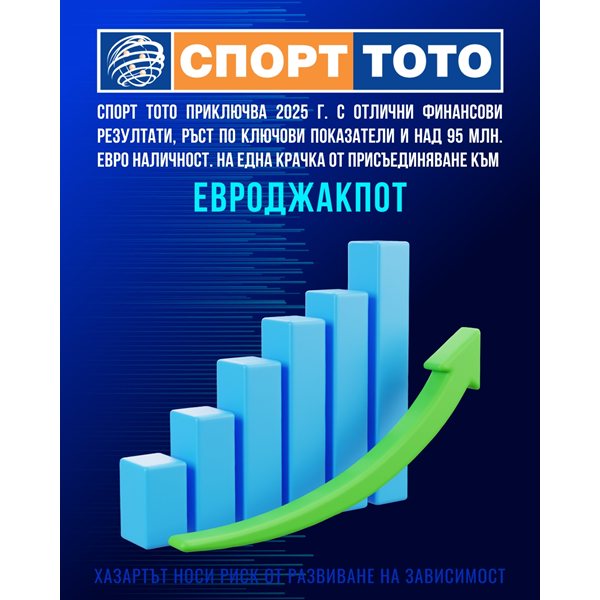 Спорт Тото приключва 2025 г. с отлични финансови резултати, ръст по ключови показатели и над 95 млн. евро наличност. На една крачка от присъединяване към Евроджакпот.