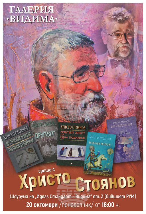 Срещата ще се състои в галерия „Арт зона“ (бивш РУМ). Това ще бъде първото официално представяне в Севлиево на родения в Габрово майстор на писаното слово. Христо Стоянов не се побира в рамки – писател, журналист, драматург, преводач, колекционер, дарител, общественик, посочват организаторите. Те информират, че Стоянов е автор на над 30 книги с проза и поезия, който не пести думите и не се съизмерва с другите. Един от най-оригиналните български разказвачи на последните три десетилетия, най-заядливият, злободневен до проклетия и същевременно великодушен до безкрайност, казва за Христо Стоянов Любен Дилов-син.