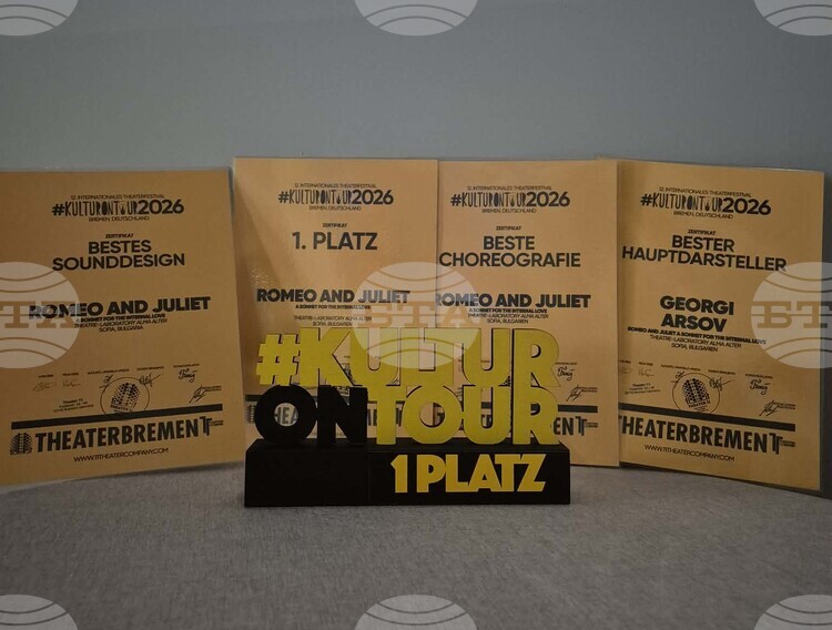 Театър-лаборатория „Алма алтер“ взе четири награди, включително гран при, от международния фестивал Kultur On Tour 2026 в Бремен, Германия, информират от трупата.