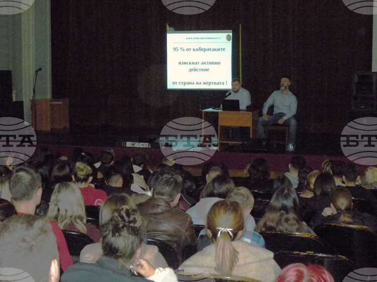 Инспекторите от дирекция „Киберпрестъпност“ Михаил Драгоданов и Петър Ненов представиха пред дванадесетокласниците филм и презентация, насочени към безопасното поведение в интернет. „Не качвай днес това, което утре ще искаш да свалиш“, с това основно послание инспектор Михаил Драгоданов започна своята презентация „Кой е срещу мен в мрежата“. Той посочи реални примери от практиката си и подчерта, че в ГДБОП ежедневно постъпват между 100 и 150 сигнала за измами, изнудване и кибертормоз, при които жертвата често е подтиквана към активно действие.