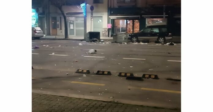 На много места по асфалта все още личат следи от опожарените кофи за смет, съобщи БГНЕС.