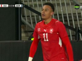 Швейцария поведе на Германия в 17-та минута. Граник Джака намери Дан Ндой отляво. Фланговият нападател навлезе в наказателното поле и...